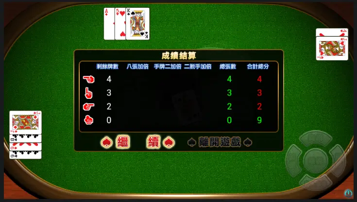 谁先出完手牌,谁就占据领先。